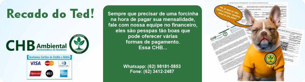 No âmbito de serviços é uma das melhores empresas do mercado oferecendo qualidade a preços justos e colecionando elogios e acolhendo críticas para o aprendizado de cada dia. a CHB Ambiental prima pela qualidade e não pelo preço baixo, pela proteção aos seus colaboradores e parceiros e está sempre atenta aos aspectos físicos dos resíduos coletados e alerta, quando necessário, de forma didática, seus parceiros na prevenção de acidentes.